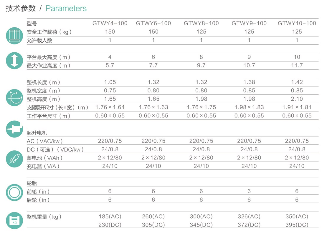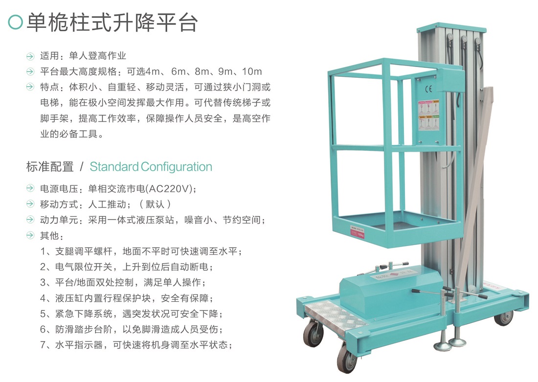 平臺最大高度規(guī)格:可選4m、 6m、8m、9m、10m