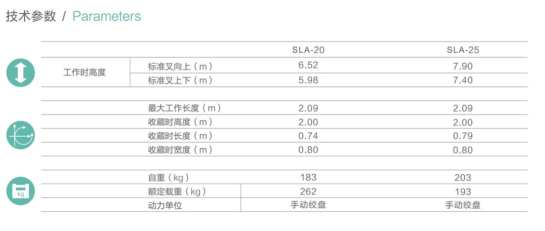 備有雙速升降絞盤收藏時高度只有1.99m, 非常精致輕巧,可進出一般通道,機背滑輪藏于機身背部有助于搬運上下貨車,方便運輸